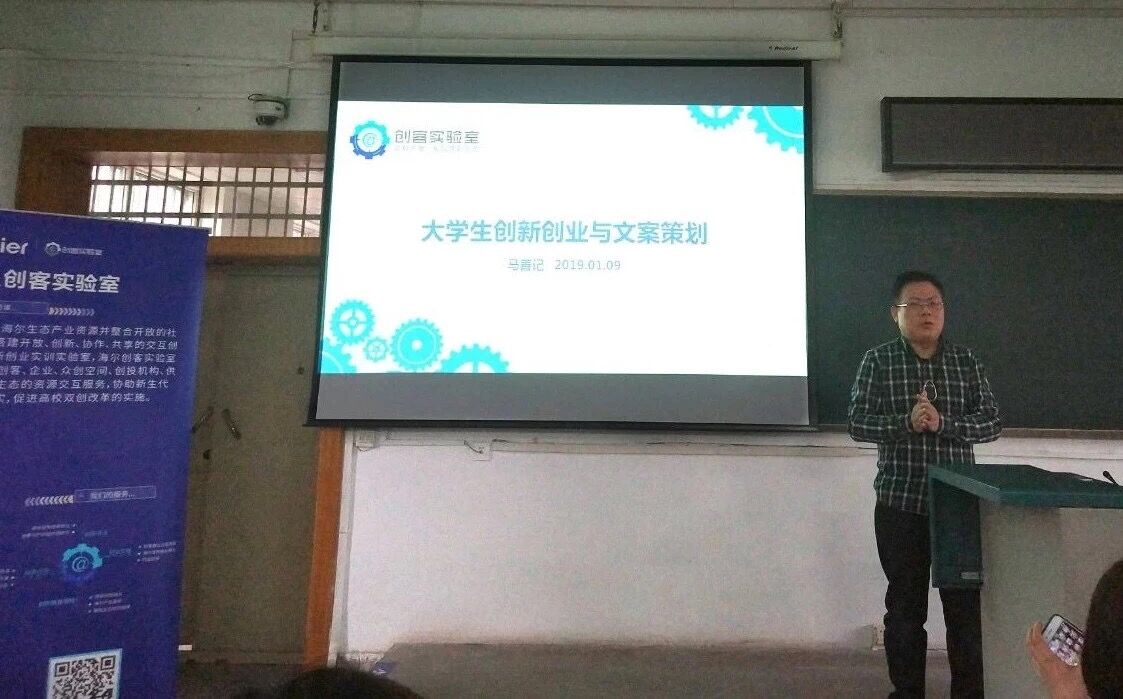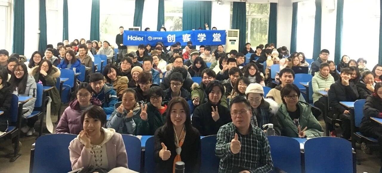 挂牌仪式过后,是海尔创客实验室服务高校创客的维度之一——创客学堂,旨在邀请创业创新经验丰富的业界大咖、专家,普及双创相关知识,分享双创经历与故事,以解决高校创客在双创领域面临的困境、疑难。