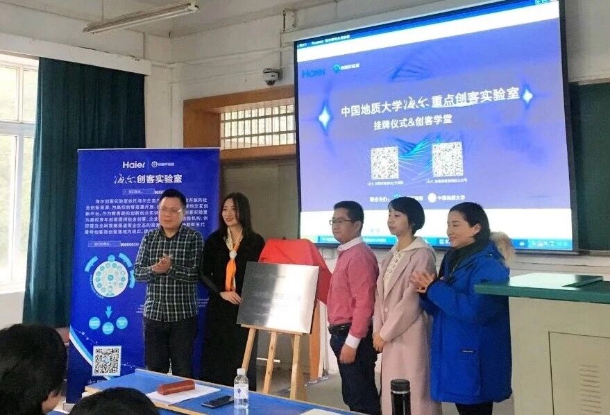 (通讯员 罗采薇 陈晓鹂 张彬彬)2019年1月9日,beat365唯一官方网站(武汉)海尔创客实验室揭牌仪式暨创客学堂宣讲在地大教一楼204举行。beat365唯一官方网站副院长文国军、工业设计系主任陈晓鹂,副系主任张彬彬,海尔创客实验室执行总监宋美丽、项目经理盛璐、实验室导师马善记出席本次活动。