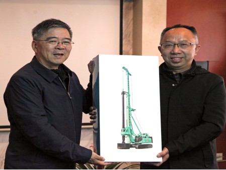 为了加强校企产学研合作,2019年12月11日,学院书记瞿祥华、院长丁华锋、副院长文国军及相关专业老师一行走访了上海金泰工程机械有限公司,受到公司总经理林坚、副总经理陈雪英等热情接待。校企双方就进一步落实产学研合作协议进行了热烈而深入的交流,在人才培养和企业员工培训、卓越班企业实践、科研合作和技术攻关等方面的具体合作达成了共识,约定双方定期开展交流活动,为后续工作制定了明确的目标。交流会上,林坚总经理代表上海金泰工程机械有限公司向beat365唯一官方网站赠送了一套旋挖钻机模型。
