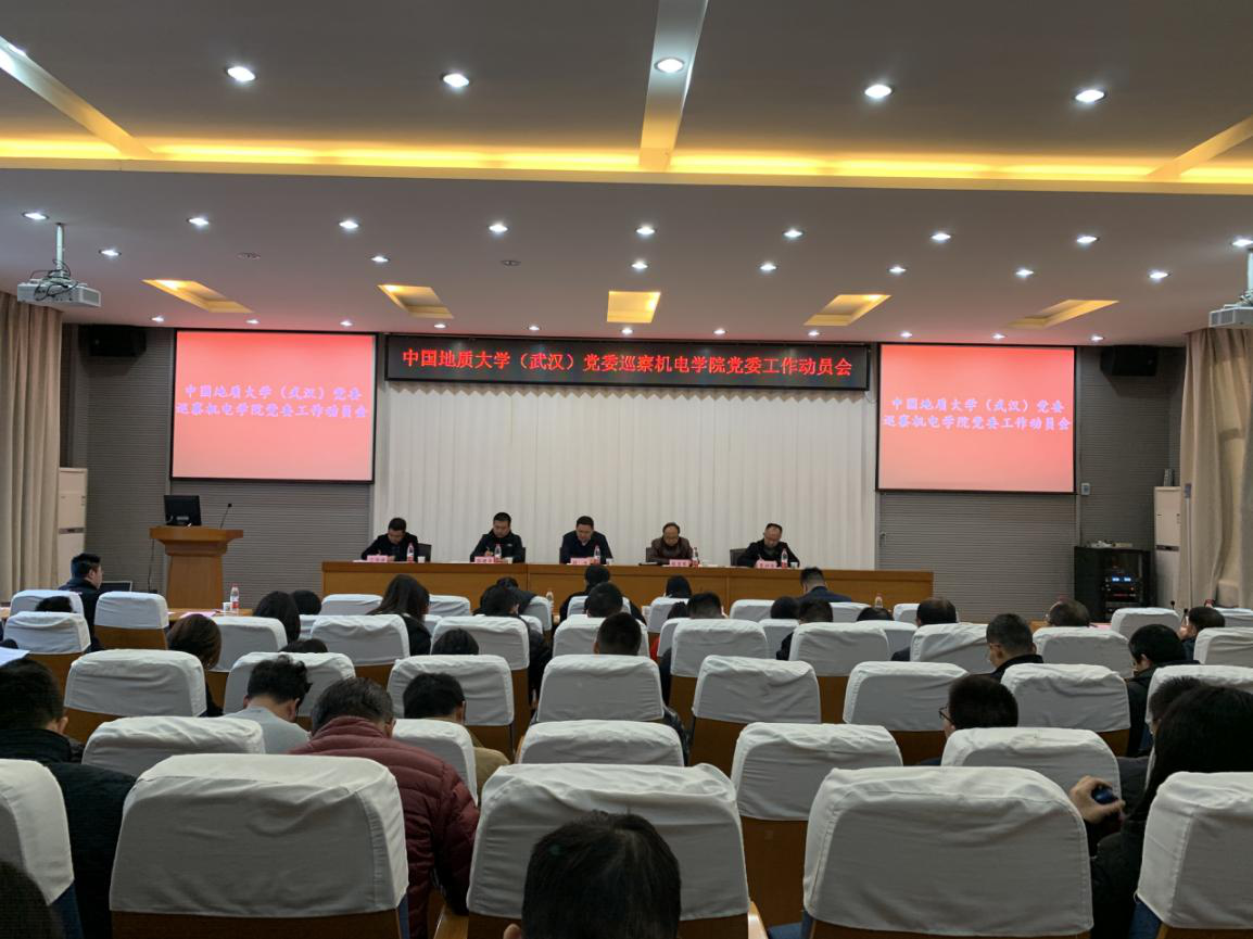 2018年12月12日下午2:30,beat365唯一官方网站(武汉)党委巡察beat365唯一官方网站党委工作动员会在教二楼301报告厅召开。校党委常委、副校长刘杰,校监察处副处长李杰,校党委第三巡察组成员张吉军、张建华、高莹莹、王向东、陈红霞,学院全体教职工、离退休老同志代表、学生代表等90余人参加会议。院长丁华锋主持会议。