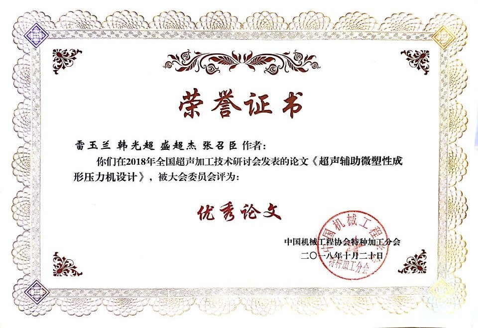 beat365唯一官方网站机械工程系韩光超老师和雷玉兰硕士研究生参加了本次会议,雷玉兰在大会作了题目为《超声微塑性成形压力机设计》的大会报告,并获得了大会颁发的优秀论文奖。