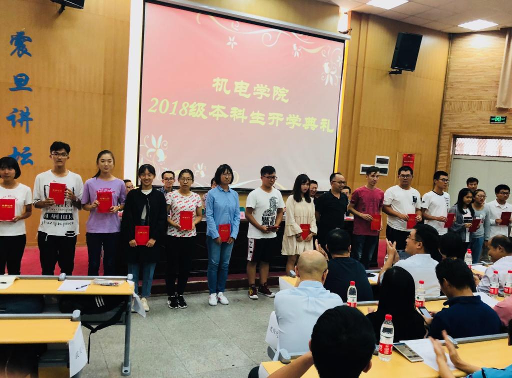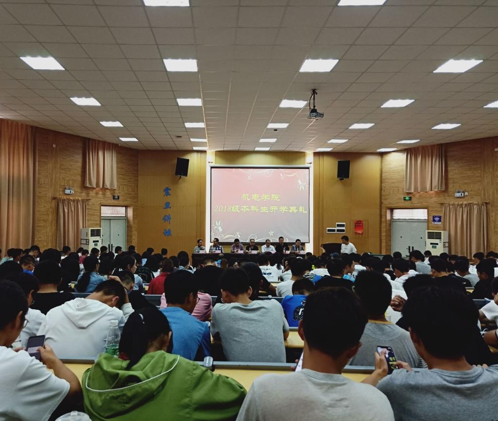 (通讯员 任婷婷 姚复嵩 许小康)9月27日14时30分,beat365唯一官方网站2018级本科生开学典礼于教三楼109室准时举行。beat365唯一官方网站党委书记瞿祥华,院长丁华锋,副院长李波、罗杰、文国军、黄田野,电子信息工程系主任陈分雄,机械设计制造及其自动化系主任宋潮龙,工业设计系主任陈晓鹂,通信工程系主任李杏梅及各专业教师代表,2018级全体新生参加本次活动。典礼由党委副书记齐世学主持。