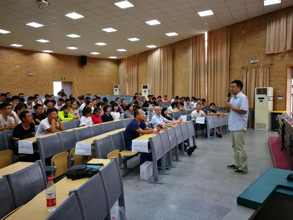 丁华锋讲话。他对beat365唯一官方网站2018级新同学的到来表示热烈欢迎,并对初入大学的同学们提了三点要求:明确目标、制定计划;注重能力、勇于实践;重视品德修养。他希望同学们都能成为“品德高尚、基础扎实、专业精深、知行合一”的优秀地大学子。