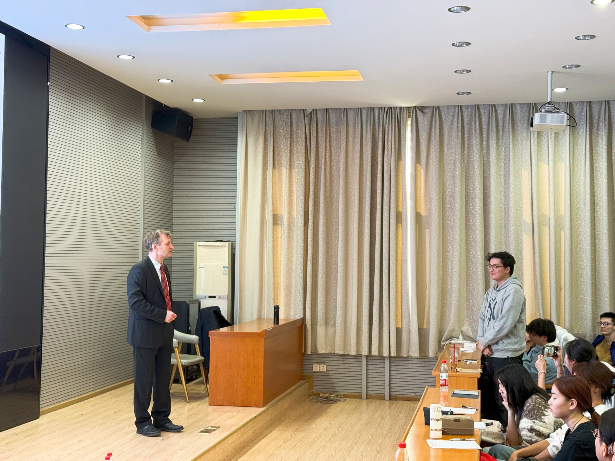 讲座中Rudolf 教授从文化差异、学制特点、学习场景等多个维度展开分享,并结合中德合作办学实际进程,介绍了双方在课程体系衔接、国际资源共享等方面的合作机制。通过生动讲解与情景模拟为同学们全面勾勒出德国留学的真实图景。最后,Rudolf 教授为大家分发德国特色糖果,讲座在温馨愉悦的氛围中圆满落幕。