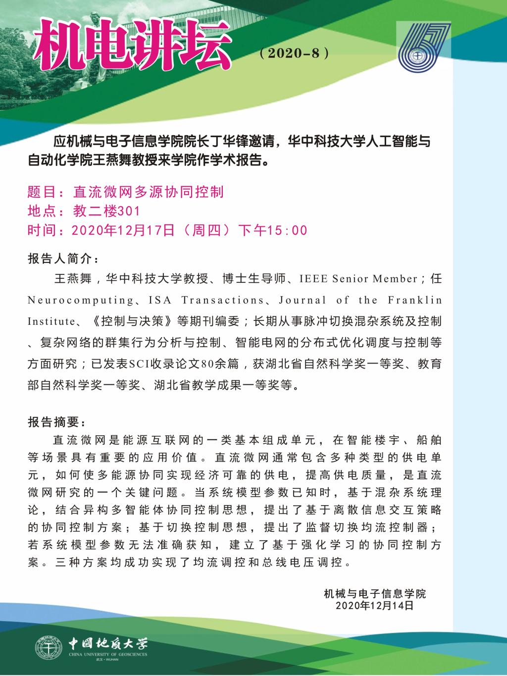 机电讲坛2020-8华中科技大学王燕舞教授学术报告