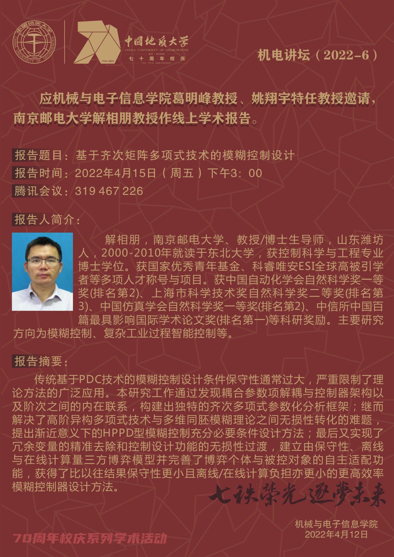机电讲坛(2022-06):南京邮电大学解相朋教授学术报告