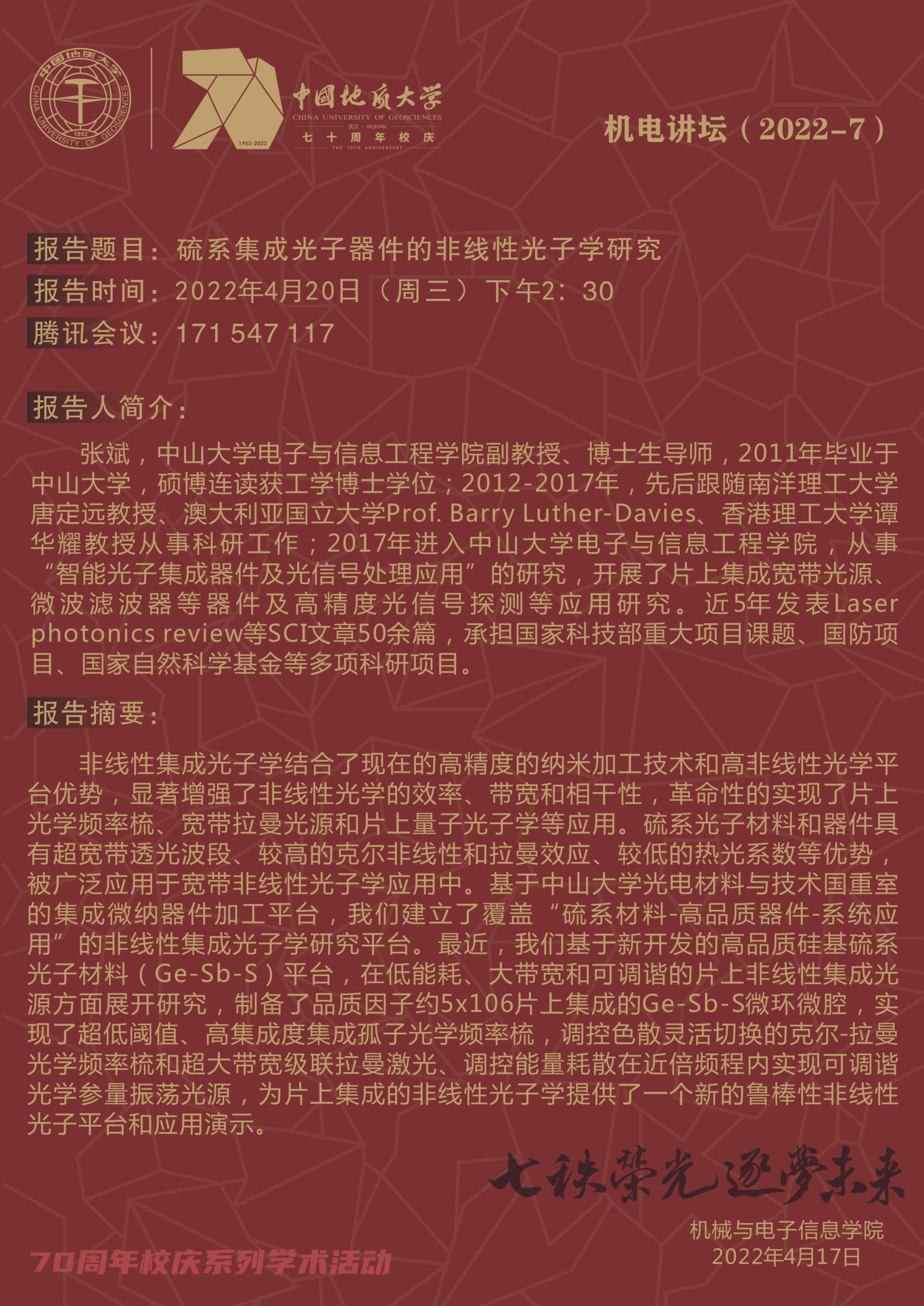机电讲坛(2022-07):中山大学张斌副教授学术报告