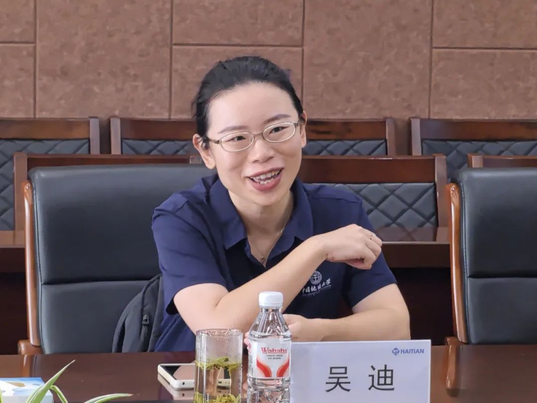 吴迪代表学院感谢海天集团提供了优质实习与就业平台,她介绍了学院学生特点,即理论基础扎实、学科竞赛成绩突出、具有不怕吃苦的奋斗精神和较强的实践驱动力,这些特质在制造业实践中得到了充分展现。她表示,学院毕业生对海天集团的工作环境、生活条件普遍满意,入职后展现出积极的精神风貌,学院愿持续深化合作,引导更多优秀毕业生到海天集团工作。