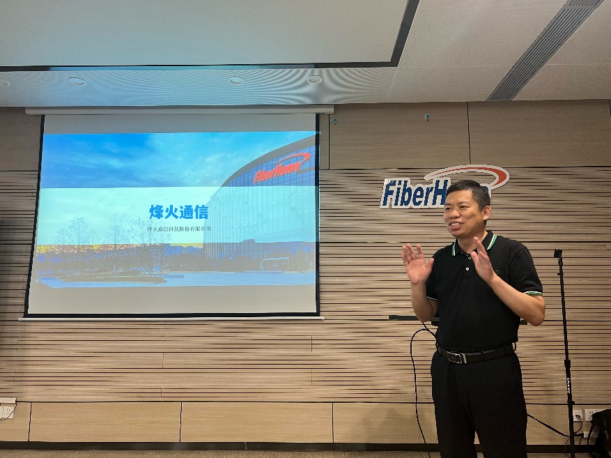 首先,烽火通信公共研发部副总经理陈晓武,介绍了公司的发展历程、近年来企业技术发展与未来发展方向,结合新工科专业特点,为同学们讲述专业与新技术、新产业、新业态相融合。鼓励同学们投身实践,结合个人优势,保持科研追逐与热情,在实现个人目标的同时,为民族产业创新而努力。