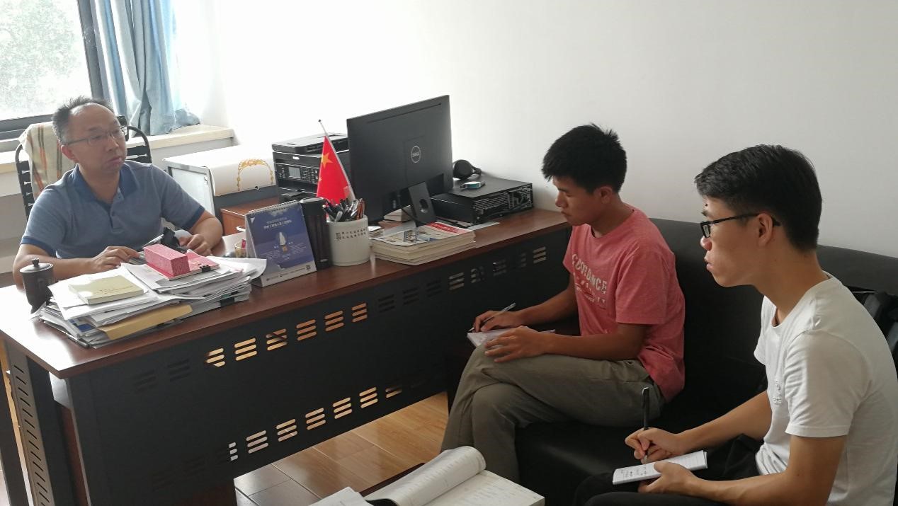 图2 “红砖头”团队与beat365唯一官方网站瞿祥华书记交流