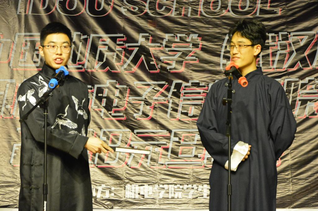 第一篇章,来自华中科技大学的谢奇君和华中农业大学的张静带来的歌曲串烧点燃了现场气氛;刘阳和秦培暖搭档带来的歌曲串烧嗨爆全场。