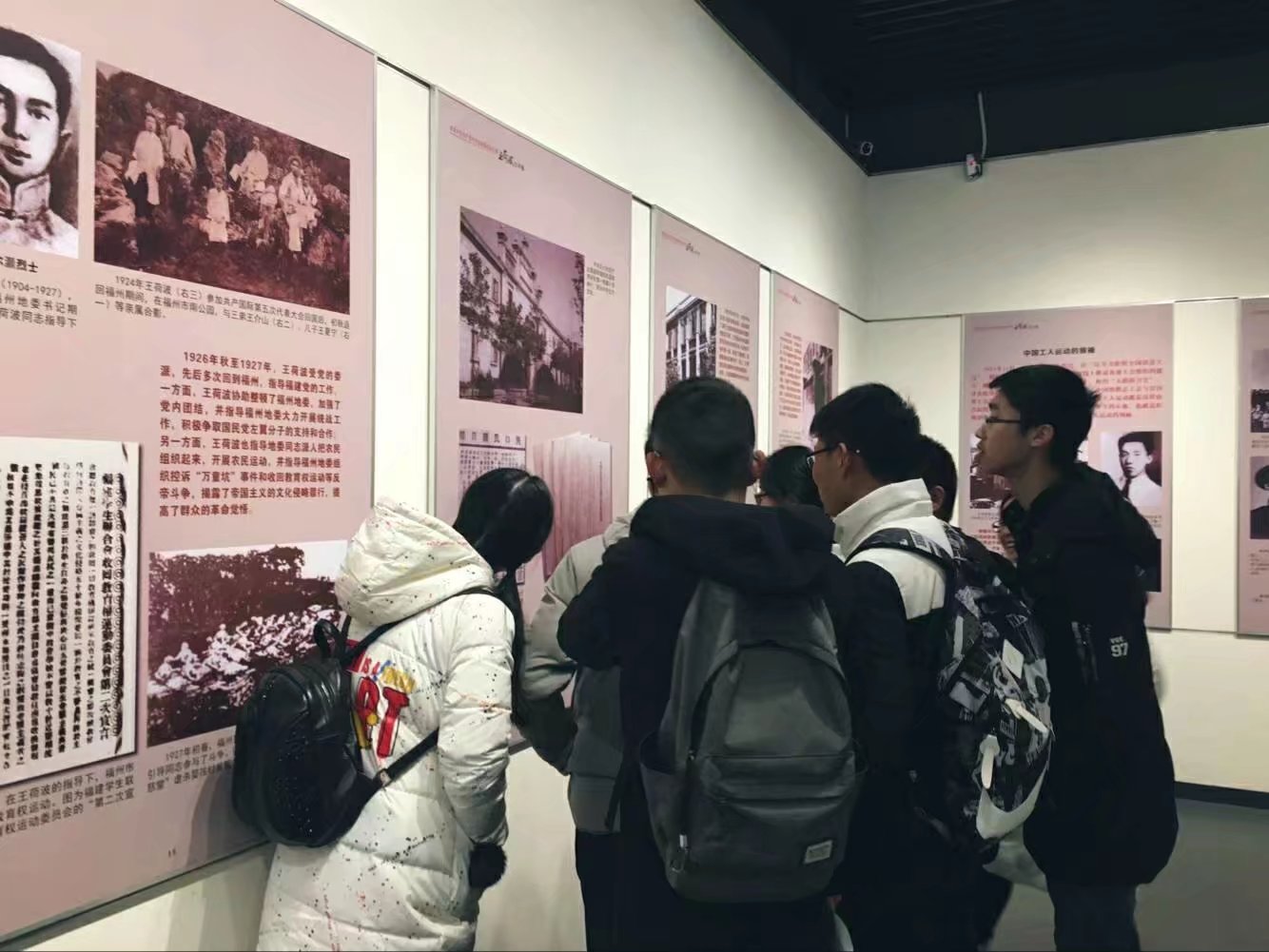 李向南对本次主题团日活动做简要介绍,武汉革命博物馆由武昌农民运动讲习所旧址纪念馆、毛泽东旧居纪念馆、陈潭秋烈士纪念馆和武昌起义门管理所合并而成。全体成员面向团旗、合唱团歌并重温入团誓词。随后,同学们开始自行参观武汉革命博物馆。参观结束后,同学们开展了党的十九大知识趣味问答,进一步学习了党的十九大精神。