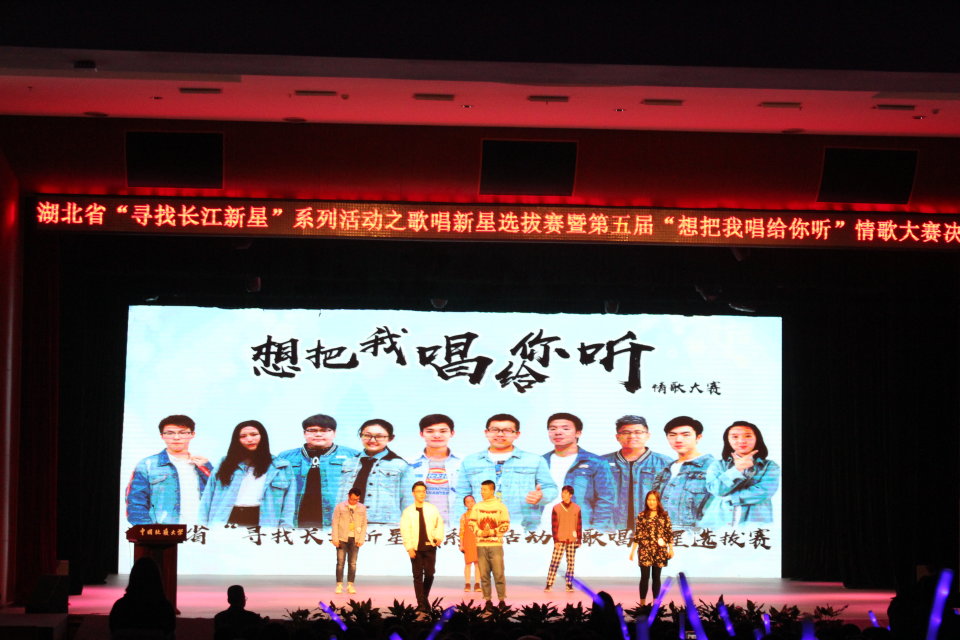 11月25日晚,由beat365官网主办的湖北省“寻找长江新星”系列活动之歌唱新星选拔赛暨第五届“想把我唱给你听”情歌大赛决赛在弘毅堂举行。来自武汉大学、华中科技大学、华中农业大学、中南民族大学以及beat365官网的10位选手参加决赛。beat365官网马晓晨凭借一首原创歌曲《随手写的歌》将全场观众带入感人情境,最终斩获冠军;华中农业大学张静获得亚军;华中科技大学谢奇君获得季军。