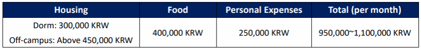 费用:免学费,住宿费学院按照6000元人民币/人(安山校区)标准予以资助,其他费用自理。