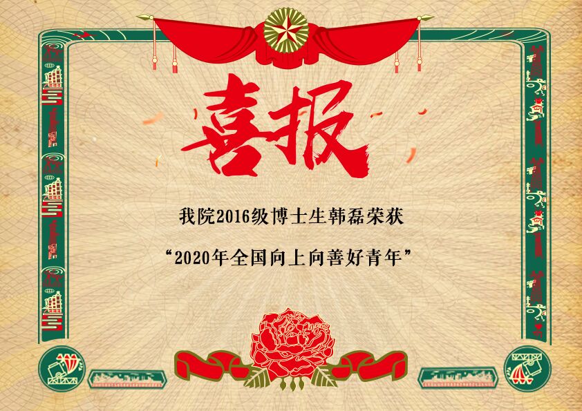 [2020.5]beat365官网2016级博士生韩磊 荣获 “全国向上向善好青年”