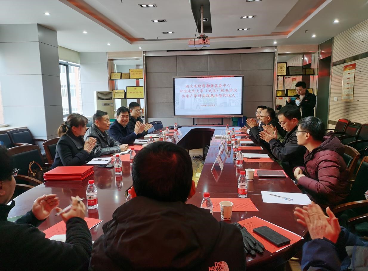 瞿祥华书记代表学院表示感谢,并指出省地勘装备中心在人才培养、科学研究、联合攻关方面有悠久的历史,对双方的合作表示高度的肯定和深切的期望,希望通过仪器设备研制,联合共建实验室,携手共进,充分发挥装备中心和地大共同的优势,促进科教融合和产教融合的发展。