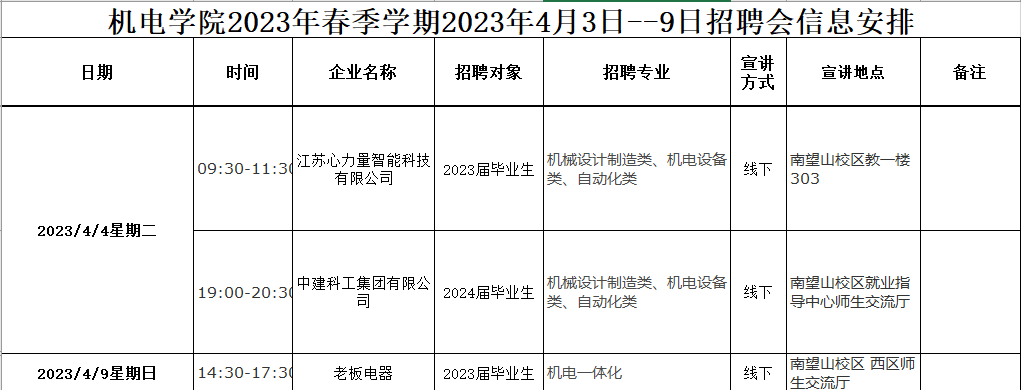 【毕业生·2023年4月3日--9日招聘会信息】