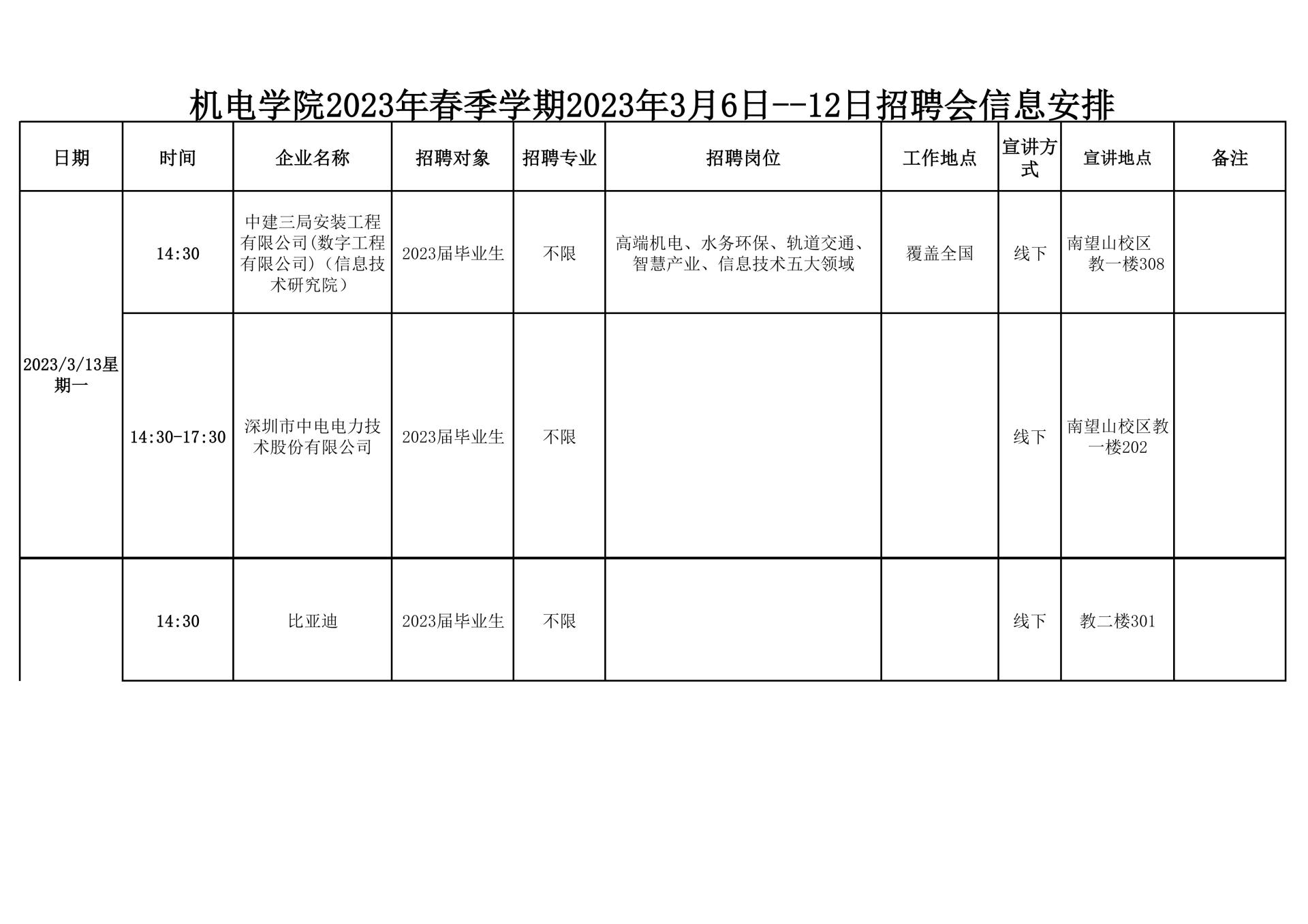 【毕业生·2023年3月13日--18日招聘会信息】beat365唯一官方网站2023年春季学期2023年3月13日--18日招聘会信息安排